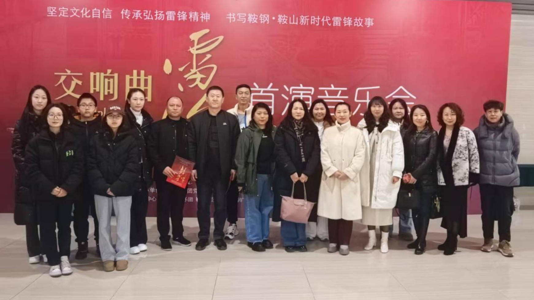 1963年3月5日,《人民日报》发表毛泽东题词:“向雷锋同志学习”。自此,学雷锋运动如春风般在全国范围内蓬勃兴起。今年3月5日,我们迎来了第62个“学雷锋纪念日”,同时这一天也是第26个“中国青年志愿者服务日”。为大力弘扬雷锋精神,传递志愿力量,2月27日,公司党总支精心组织部分党员师生,满怀热忱地走进鞍山大剧院,与钢都人民一同沉浸在交响曲《雷锋》首演音乐会的激昂旋律之中。