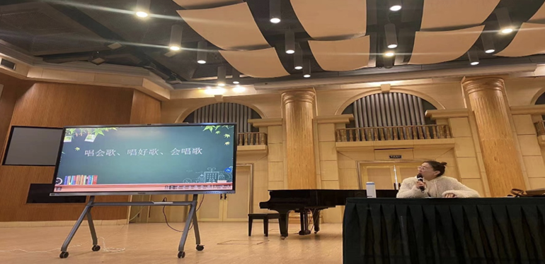 歌唱既是音乐课程的重要组成部分,也是员工易于接受并乐于参与的一种学习形式,它对激发员工音乐兴趣、发展核心素养、愉悦身心、陶冶情操等具有十分重要的作用。作为音乐学(师范)专业的员工要树立以新课标为指导,以落实核心素养为主线,通过员工演唱技能的训练,提升文化艺术素养。BG大游于2023年12月18日,在新理化实验楼五楼音乐厅,特邀辽宁省名优教师钱宏老师,为公司员工开举办“核心素养背景下的歌唱教学”的讲座活动。参加本次讲座的有BG大游音乐教法老师魏凌霜、王曼雯,以及2022级学科教学(音乐)研究生和音乐学(师范)专业本科生。