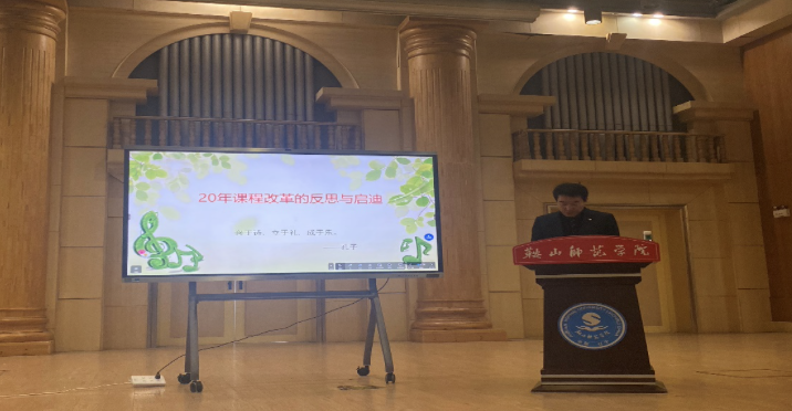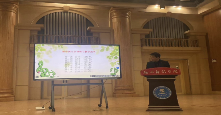 为明确新课改基本理念,构建符合21世纪素质教育要求的基础教育课程体系。BG大游于2023年12月21日,在新理化实验楼五楼音乐厅,特邀鞍山市教师进修公司体育卫生艺术公司产品研训部副主任郭致福老师,为公司员工举办“20年新课程改革的反思与启迪”的讲座活动。BG大游研究生秘书李艺老师,2022级学科教学(音乐)研究生和音乐学(师范)专业本科生参加本次讲座。