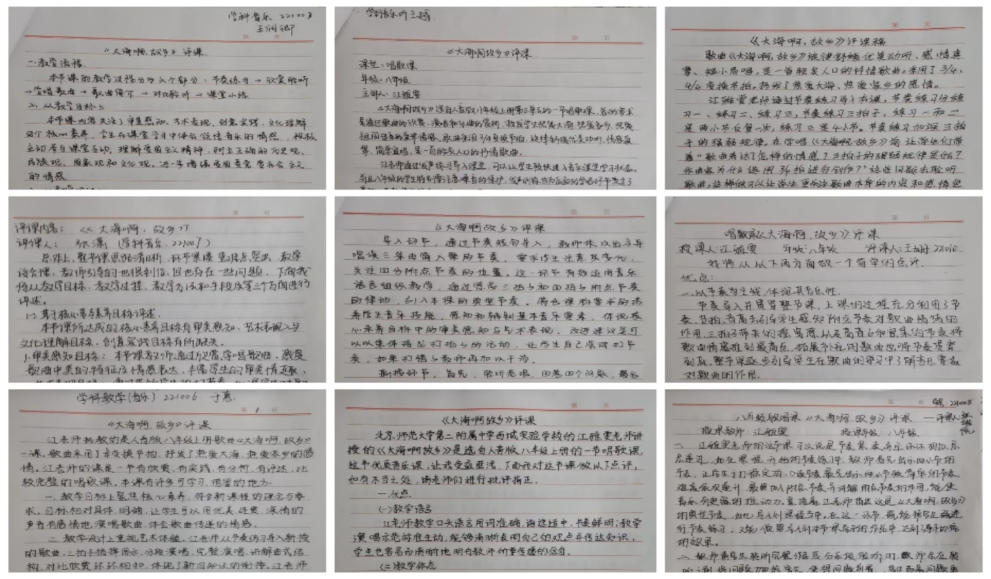 大赛第一项是公司产品专业技能展示,包括教学设计、评课、模拟课堂三个环节。本次大赛教学设计和评课采用手写的形式,其中教学设计内容为人音版八年级《生命之杯》——《我和你》;评课内容为《大海啊,故乡》不少于500字;模拟课堂采取现场抽签的形式,每人讲授10分钟。