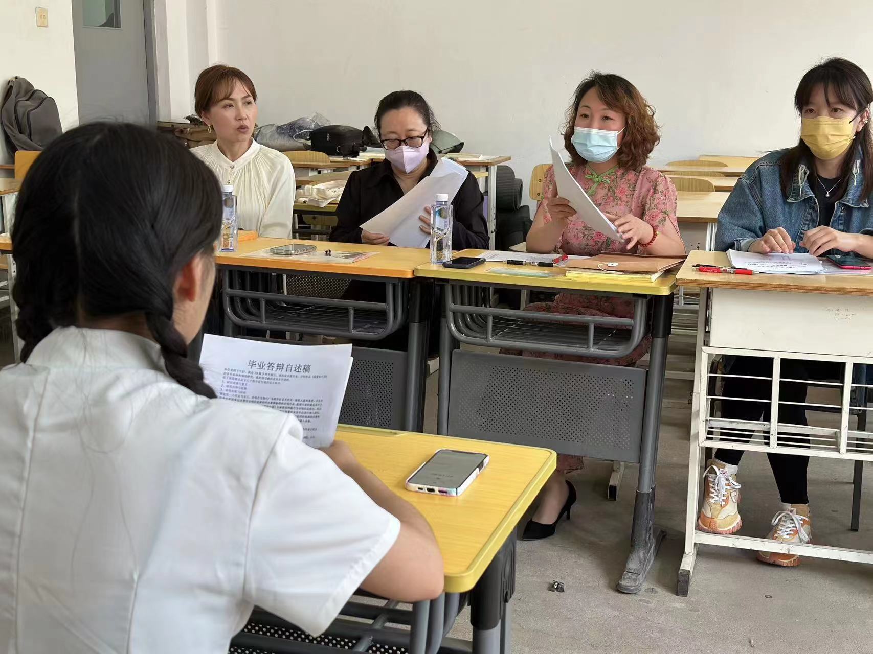 同学们紧张有序的进行答辩,认真准备答辩自述材料。