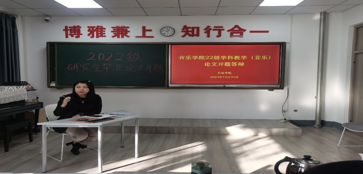 毕业论文开题答辩是研究生教育的一个重要环节,通过开题报告的撰写有助于研究生进一步明确研究方向,清晰了解研究框架和方法,论文研究是否具有可行性,提供论文研究能力,使论文研究更加系统完整,从而高质量完成毕业论文。BG大游于2023年12月22日在302会议室对2022级学科教学(音乐)研究生进行学位论文开题答辩。此次学位论文开题答辩委员会成员由校内外专家共同组成,开题答辩委员会特邀东北师范大学博士后刘绵绵副教授线上指导,研究生导师周燕、栗琳、褚晓冬、陈辰、金美琳、于广壮,以及研究生实践导师韩迎菊参加此次论文开题答辩,李艺老师担任答辩秘书。