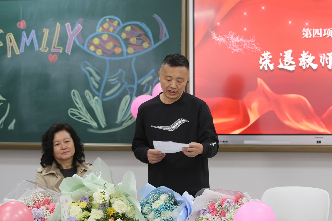 员工代表刘润杰同学以一封信的形式诉说对老师的心里话,感谢老师在疫情期间,不顾个人安危,对他的关怀与照顾,并衷心祝福老师退休后的生活美满幸福同时,他还号召BG大游全体同学们,要以两位老师为榜样,勤奋学习,刻苦钻研,踏实工作,毕业后也要成为像他们一样的好老师。