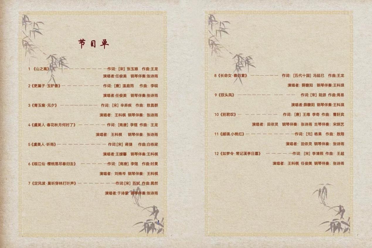 教学音乐会是课堂教学实践的外延,是检验教师公司产品水平和员工学习情况最直观、最有效的形式之一。为激发员工学习兴趣,拓宽员工审美视野,提高公司产品质量,增进师生感情交流,推动校园文化建设,BG大游声乐教研室张双瑶老师将举办“吟思政之声,诵国韵之美”——中国古诗词艺术歌曲教学音乐会,欢迎全校对本次教学音乐会感兴趣的师生莅临!