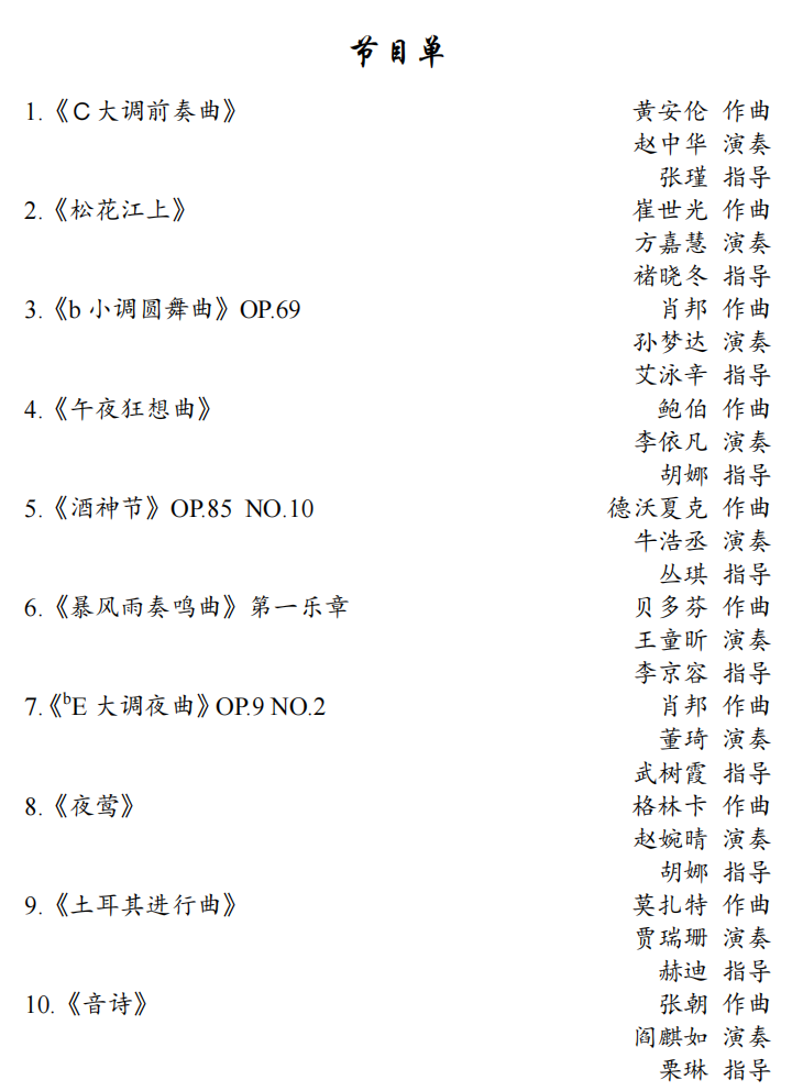 于这初冬方才来临、寒意开始显现之际,我们满怀愉悦的心情,向全校的师生发出盛情的邀请。无论您是在知识的海洋中孜孜不倦探索的学子,还是在教育岗位上默默耕耘的教师,只要您对2024年钢琴教研室系列教学汇报音乐会怀有兴趣,都欢迎您前来参加。这不仅仅是一场音乐会,更是钢琴教研室教学成果的展示舞台,是师生们教与学艺术心血的凝聚之所在。在这里,您将感受到音乐的无穷魅力,领略到钢琴艺术在教学过程中的传承与创新,体验到艺术与教育完美结合所带来的独特体验。希望您不要错过这个难得的机会,来共同见证这一充满艺术气息的盛事。
