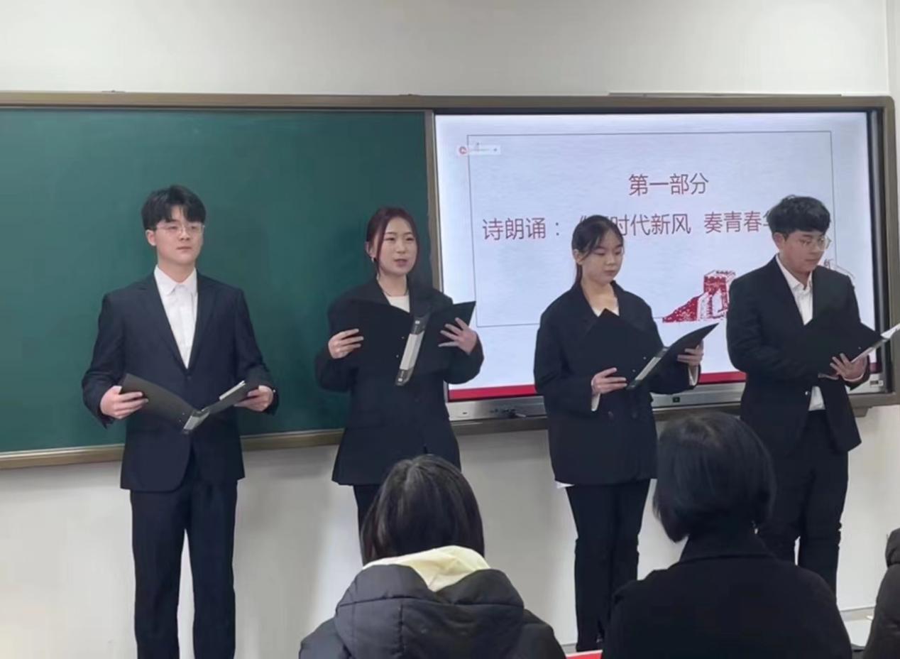 2203班的主题班会以“青春践行二十大,踔厉奋发向未来”为主题展开。首先,蔡庭轩等4名同学的诗朗诵《颂时代新风 奏青春华章》,带领大家共同感受中国的强大与担当,激发同学们的强国心、报国志、爱国情。