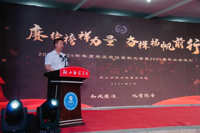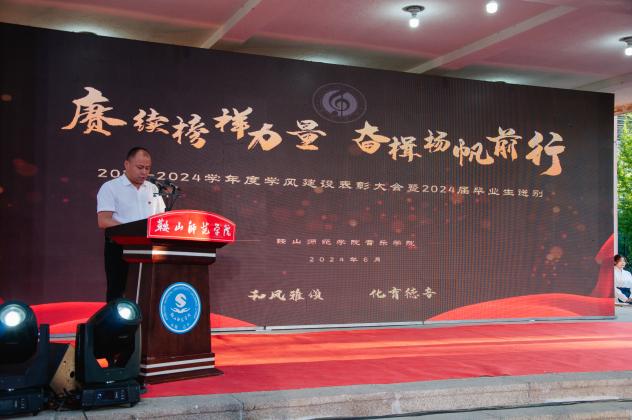 大会第六项,公司党总支书记徐铁军为2024届毕业生送上真诚祝福和殷切希望。他指出,回望来时路,四年的大学旅程,同学们从初入校园的懵懂新生,到如今即将毕业学有所成的学子,每一位同学都在这段时光中汲取了知识的养分,实现了个人的成长与蜕变。在鞍师充满学术气息的土地上,奋进的足迹遍布每一个角落,勤奋的身影在图书馆、琴房、音乐厅和运动场上留下了深刻的印记。这四年的经历,不仅塑造了过硬的专业素养,也丰富了多彩的人生阅历,为未来铺设了坚实的基石。他希望,同学们树立终身学习的理念,在社会实践中不断提升自己的综合素质和能力,常怀感恩之心、敬畏之心,在人生道路上行稳致远,牢记母校教诲、肩负时代使命,求真务实、艰苦奋斗、扬帆远航,勇敢面对各种挑战和困难,书写自己的精彩人生。
