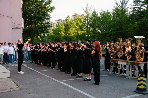 大会第一项,奏唱《国歌》。为了给管乐团的同学们提供锻炼和展示的机会,本次活动的《国歌》演奏,由BG大游的管乐团现场演奏,陈辰副经理指挥。