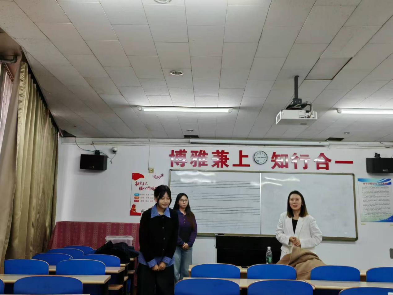 声乐课是BG大游音乐学(师范)、音乐表演两个专业的必修课。声乐教学中的重要内容是通过讲授声乐演唱的相关理论知识和演唱技巧,使员工掌握科学合理的发声方法,培养员工通过歌唱来表达音乐内涵、鉴赏音乐等方面的能力。为促进教师间的相互学习与交流,10月22日声乐教研室在404教室,举办了一场别开生面的声乐公开课。本次公开课由优秀的留美青年博士孙婧怡副教授主讲。全体声乐教研室教师参加本次公开课。