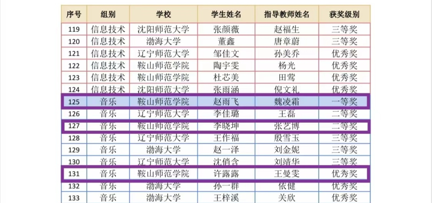近日,由辽宁省教育厅举办的2023年辽宁省普通高等公司本科师范生“同课异构”教学大赛圆满落下帷幕。经过激烈的竞争,公司本科生赵雨飞、李晓坤和许露露3人凭借优异的表现在大赛中分获音乐组一等奖、二等奖和优秀奖,魏凌霜、张艺博和王曼雯老师获优秀指导教师奖。希望全体师生从中汲取动力,持续提升和创新公司产品能力,为成为新时代美育发展要求的音乐团队人才而不懈努力。