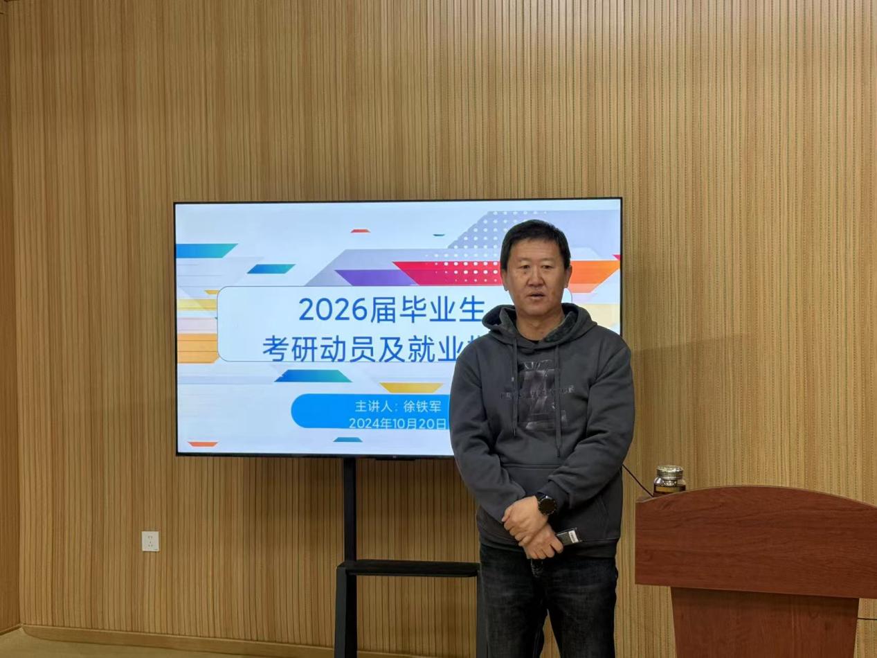 为尽早做好2026届“毕业生”就业指导与服务工作,引导毕业生树立正确的就业观念,制定合理的就业目标;帮助2026届“毕业生”研判考研形势,调动同学们的考研热情,指导科学备考,10月20日BG大游在多功能厅召开了2026届“毕业生”考研动员暨就业工作推进会。党总支书记徐铁军主持会议并讲话,辅导员罗英恺老师出席本次会议。