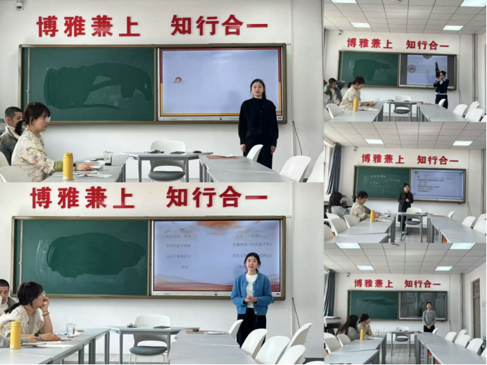 员工进行现场试讲,由教法教研室的三位老师进行评审。同学们在比赛中相互观摩、相互学习,分享教学经验和教学方法,形成了良好的学习氛围,这对音乐学(师范)专业员工教师技能水平的提高具有积极作用。
