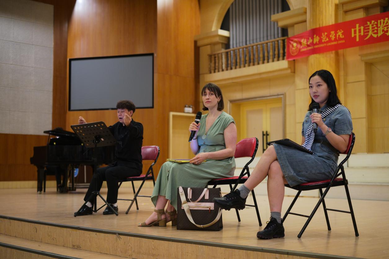 在专业指导过程中,Gavilanes博士首先从声乐基础训练入手,运用其独创的半闭塞发声法,深入讲解并示范了科学的气息运用技巧。为强化声音线条的连贯性表达,博士创新性地引入辅音[ð]专项训练,重点培养legato演唱技巧。这些精准而系统的发声训练为后续作品演绎奠定了扎实的技术基础。随后,博士带领合唱团对文艺复兴时期经典作品《Blow, Blow, Thou Winter Wind》进行了深度艺术处理。通过示范演唱关键乐句,Gavilanes生动诠释了音乐情感表达的技巧要领,并针对英文歌词发音细节进行了专业指导,特别强调了元音时值保持对实现乐句连贯性的重要作用。
