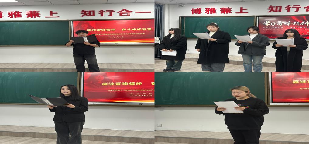 选手们用大方整洁的仪表、顿挫激昂的语调、形象生动的表现力,感染着在场的每一个人。那一句句熟悉的雷锋名言、一则则励志的雷锋日记、一个个感人的雷锋事迹,把比赛的氛围一次又一次推向高潮,赢得了评委及观众们的阵阵掌声,让员工们深刻领略到“爱憎分明的阶级立场、言行一致的革命精神、公而忘私的共产主义风格、奋不顾身的无产阶级斗志”,使雷锋精神深入同学们的心中。