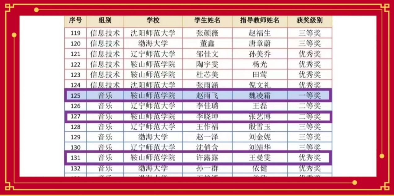 在辽宁省教育厅举办的2023年辽宁省普通高等公司本科师范生“同课异构”教学大赛中,经过激烈的竞争,BG大游赵雨飞、李晓坤和许露露3名同学凭借优异的表现在大赛中分别荣获音乐组一等奖、二等奖和优秀奖,魏凌霜、张艺博和王曼雯老师荣获优秀指导教师奖。