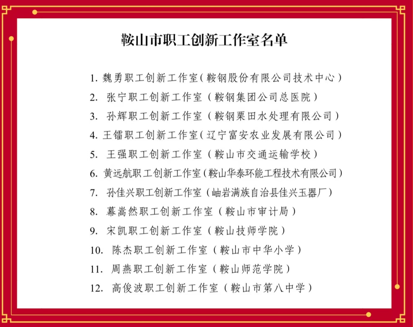 为大力弘扬劳模精神、劳动精神、工匠精神,充分发挥劳模(职工)创新工作室示范引领作用,鞍山市总工会于年初印发了《关于创建鞍山市劳模(职工)创新工作室及鞍山市职工技能提升平台的通知》(鞍工办发(2023)3号)文件,在各级工会申报和市总工会初审、实地验收的基础上,“周燕职工创新工作室”获批鞍山市职工创新工作室称号,并给予5万元支持资金。