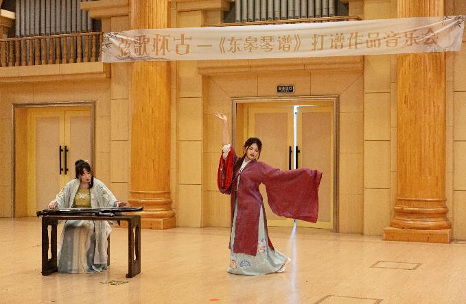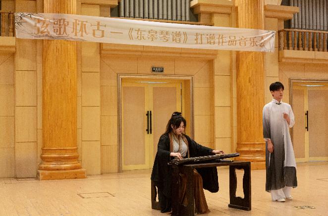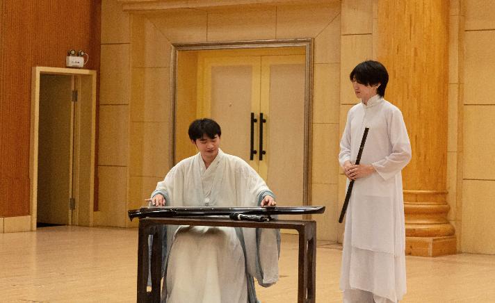 王婧萁古琴演奏、张茜睿演唱的《秋风辞》,先以写景入题,继而展现宴乐盛况,最终升华至对人生哲理的深刻思考,形成完整的艺术表达。