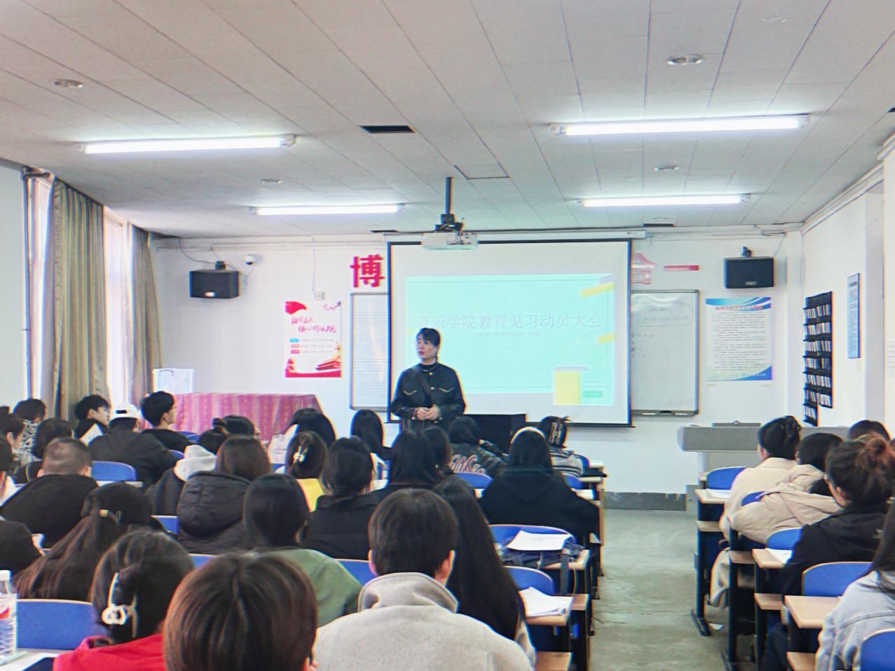 在动员大会上,褚经理对本次教育见习参加人员、教育见习基地情况和教育见习计划作出详细安排,对指导教师在见习过程中的职责、任务进行详细说明,包括对员工的指导、监督、评价、以及教育见习中员工的安全、心理和突发事件的应对措施等。同时,向同学们提出了多方面的建议,她强调,全体同学要严格遵守见习公司的作息时间,按时进出;见习期间要深入了解和熟悉见习班级整体情况和教学常规,认真听课并做好记录;务必严格要求自己,践行为人师表的准则;严格遵守公司和见习公司的各项规章制度,服从见习公司和指导教师的安排。