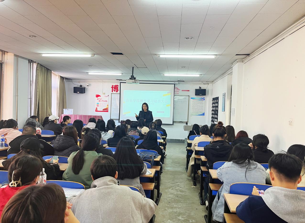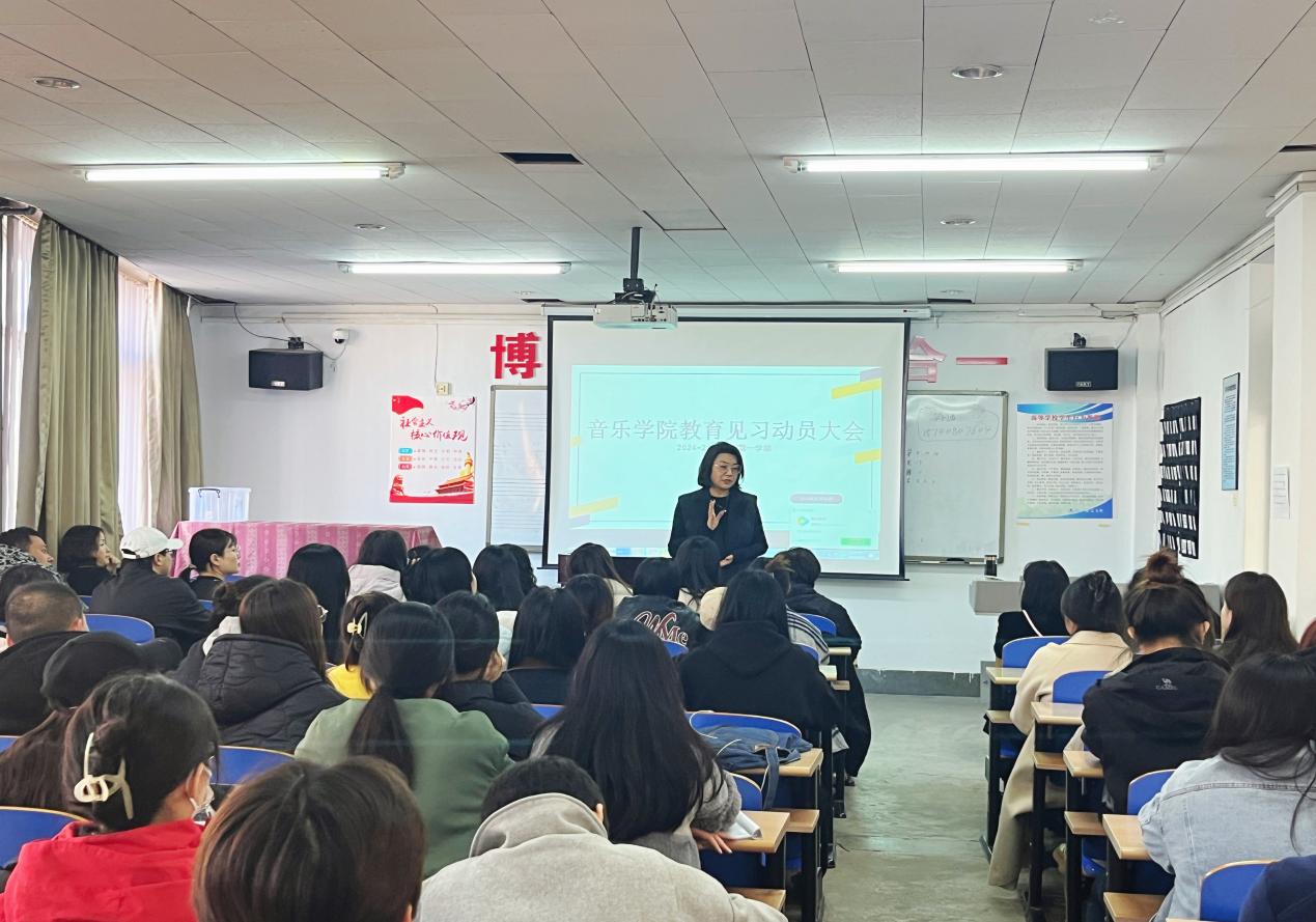 为引导2022级音乐学(师范)专业员工做好教育见习的准备工作,推动教育见习工作的有序开展,BG大游于11月12日在404教室召开了2022级教育见习动员大会。副经理褚晓冬、实践秘书冯敬华、教法教研室主任魏凌霜,见习指导教师王曼雯、李东霖、胡娜、丛琪、胡雪、张艺博、张晓蓓、赫迪以及全体2022级音乐学(师范)专业员工参加了本次会议。